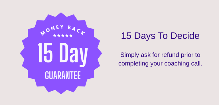 Request a refund within 15 days if it’s before your coaching call.